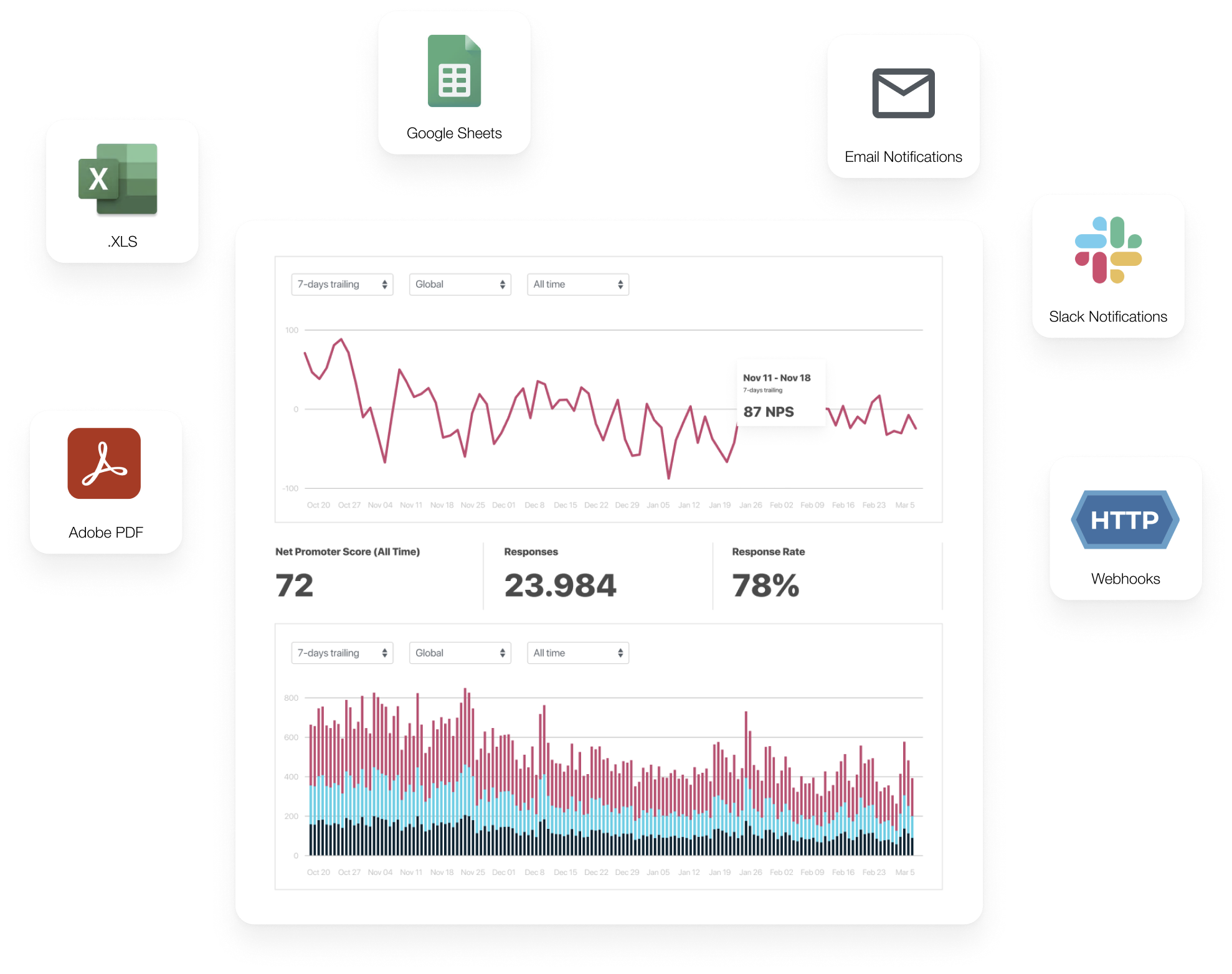 Sometimes you want to measure your progress over time. Measure and monitor the customer satisfaction and growth potential of your product with a Net Promoter Score.
